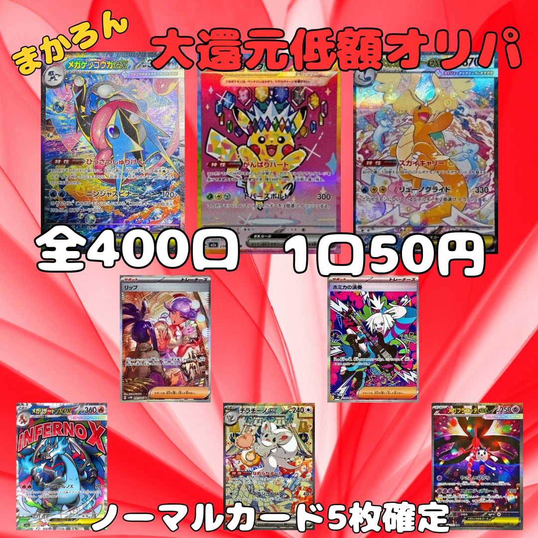 【全400口】まかろん低額オリパ 50円オリパ✨カード5枚封入オリパ|